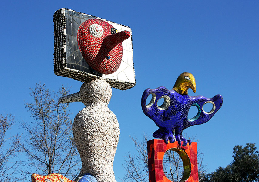 Niki de Saint Phalle's Queen Califia's Magical Circle The Only American Sculpture Garden by this Internationally-Acclaimed Artist Queen Califia's Magical Circle, the only American sculpture garden created by the renowned French-American artist Niki de Saint Phalle, has opened in Escondido's Iris Sankey Arboretum in Kit Carson Park. The garden promises to become an instantaneous cultural landmark for the San Diego region -- a place where visitors can roam at will, play, touch, dream and "find inspiration in Saint Phalle's extraordinary homage to California's mythic and historic origins and its cultural diversity," said Susan Pollack, who manages the City of Escondido's Public Art Program. Niki de Saint Phalle was born in 1930 in Neuilly-sur-Seine, France, and raised in New York City. She began painting in 1948, moved four years later to Europe (Nice, Paris and Mallorca) and first came to international prominence in 1961 as a memeber of the influential "New Realists," a group that also included Christo, Yves Klein and Jean Tinguely (her frequent collaborator whom she married in 1971). Today, she is best known for her oversized, voluptuous female figures, the Nunas, which can be seen in cities and museums around the world. Among her large-scale installations are The Stravinsky Fountain near the Centre Pompidou in Paris (1983), the Tarot Garden at Garavicchio in southern Tuscany (which was entirely financed by the artist and opened after twenty-four years of work in 1998), and the Grotto in Hannover's Royal Herrenhausen Garden (2003) A Gift for Southern California and Its Children Saint Phalle continued living near Paris until 1994 when, for reasons of poor health (brought about by exposure to toxic fumes from polyester materials used in her early sculptures), she moved to La Jolla, California. "California has been a rebirth for my soul and an earthquake for my eyes -- sea, desert, mountains, wide open sky, brilliance of light and vastness of space," she once remarked. "I have embraced another way of life, and have let my discovery of this landscape manifest itself in my work." "Queen Califia's Magical Circle is my grandmother's gift to the region," said Bloum Cardenas, a Bay Area artist and trustee of the newly established Niki Charitable Art Foundation. "Niki's first significant architectural project was The Bird's Dream and she called it that because her personal symbol was the eagle. This garden, then, is the final realization of the bird's dream, Niki's dream, to create a wonderful legacy for a place she dearly loved." The garden is Saint Phalle's last major project and stands as one of only four large-scale sculptural environments designed and built by the artist and her studio. The others are the Tarot Garden, Noah's Ark in Jerusalem, Israel (completed in 2001 in collaboration with Swiss architect Mario Botta) and Hannover's Grotto. Always interested in expanding the audience for contemporary art, Queen Califia is a place for families to gather, play and engage with a visually rich world of ideas, symbols, and forms. "My first really big piece for kids was the Golem [completed in 1970 in Jerusalem] and three generations know and love it. Here [in Escondido], you can also touch the sculptures," Saint Phalle said in one of her last interviews. "They feel nice and you won't harm them. You can be a part of them ... it's like a marriage between the sculptures an the child or adult. Maybe it brings out the child in adults, too." Queen Califia's Magical Circle took nearly four years to plan and execute and Saint Phalle remained totally immersed in the project until just before her death at the age of 71 in May 2002. Foundation trustees Bloum Cardenas, Marcelo Zitelli and Dave Stevenson have overseen the garden's final staging. They have worked closely with Susan Pollack and Don Anderson, Escondido's Director of Community Services, to ensure that the artist's vision is fully realized, even in the smallest details. |