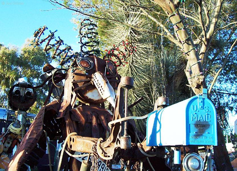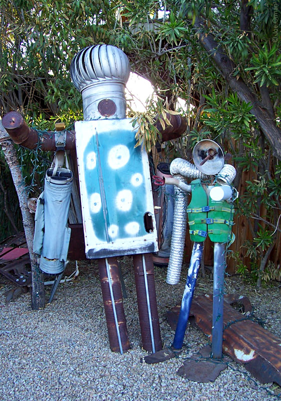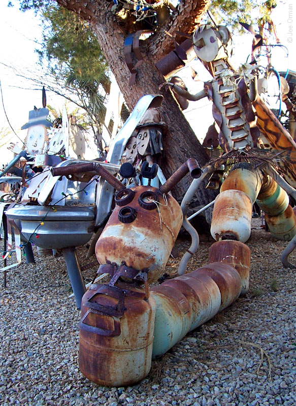 Jerry Hall was not the kind of guy to let illness douse his creative fires. For decades the welder and self-taught folk artist transformed cast-off auto parts into a collection of whimsical figures to decorate his front yard. Even while undergoing chemotherapy for the colon cancer that would eventually claim his life, Hall continued to add to the sculpture garden, which eventually grew to more than 60 pieces. Two of the chrome-bumper figures (seen here in the rightmost photo in the bottom row) are even named "Mr. and Mrs. Chemo" to express his feelings about the disease. Hall passed away in October 2010; his wife Chris maintains the sculpture garden so that passersby may still experience her husband's joy in living.