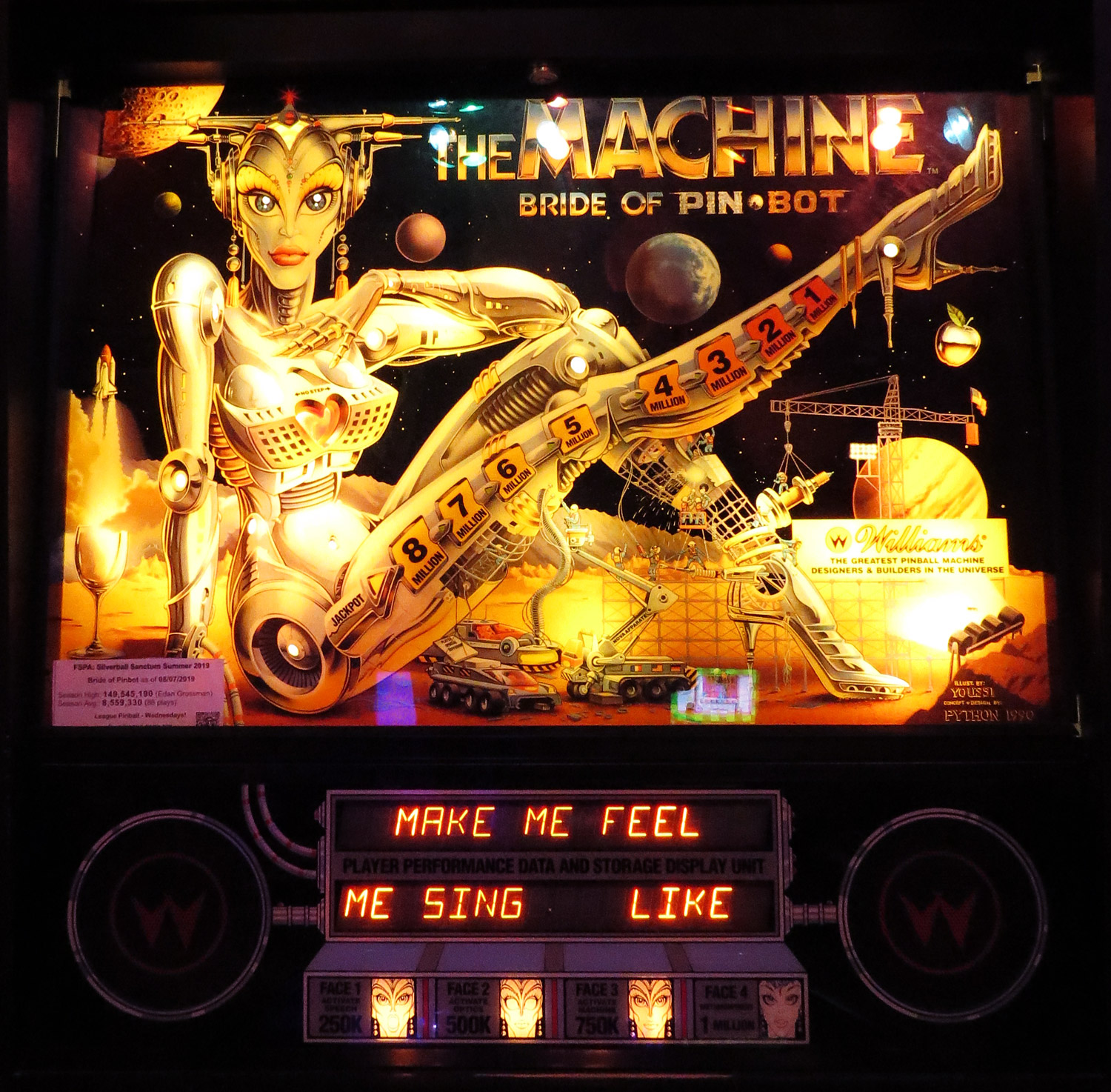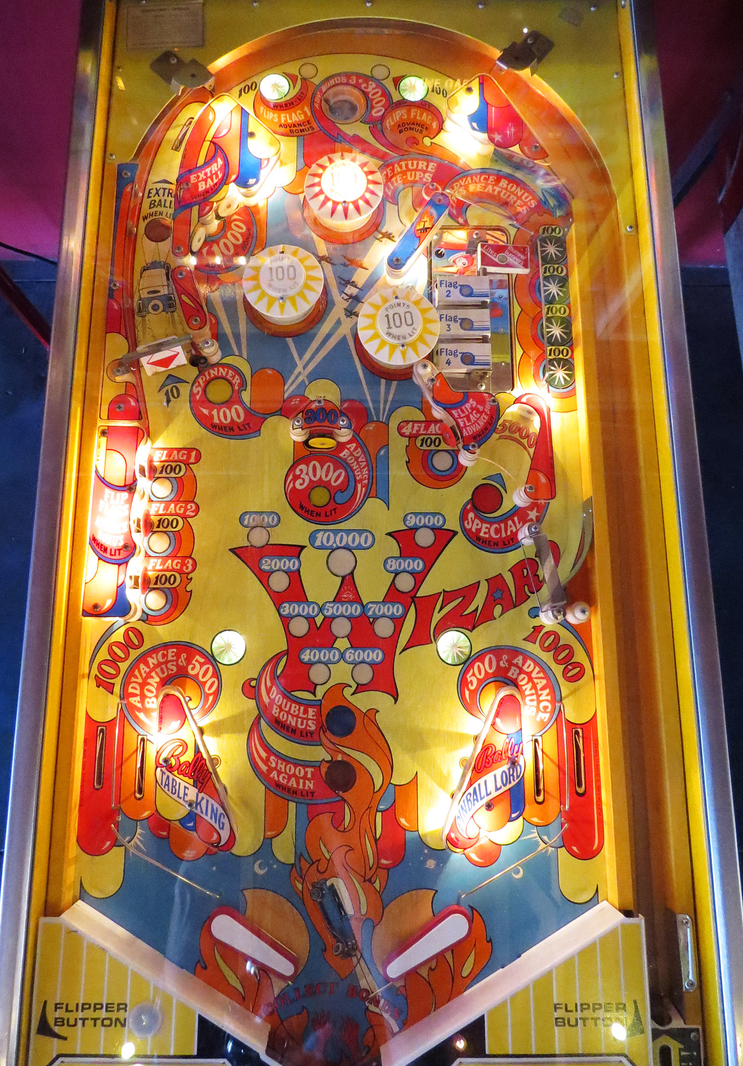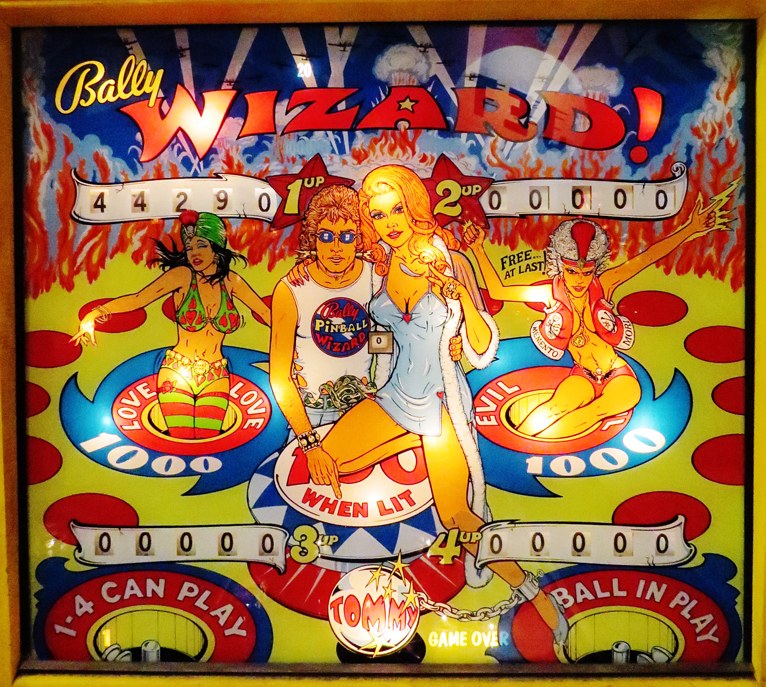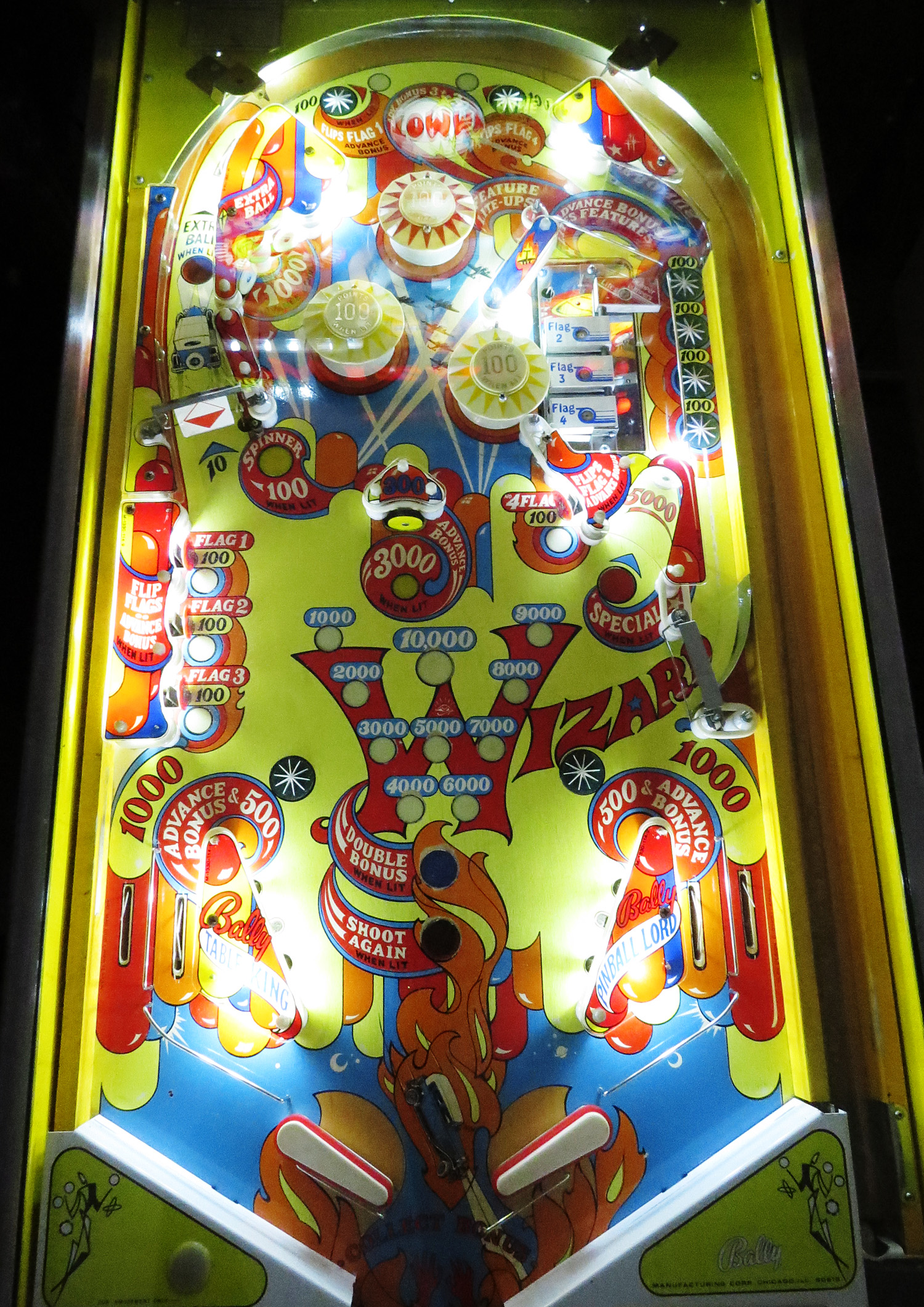 |  | "Ain't got no distractions Can't hear no buzzers and bells, Don't see no lights a flashin' Plays by sense of smell. Always gets a replay, 'n' never tilts at all ..." Wizard (Bally, 1975) |