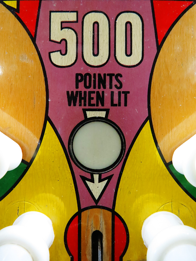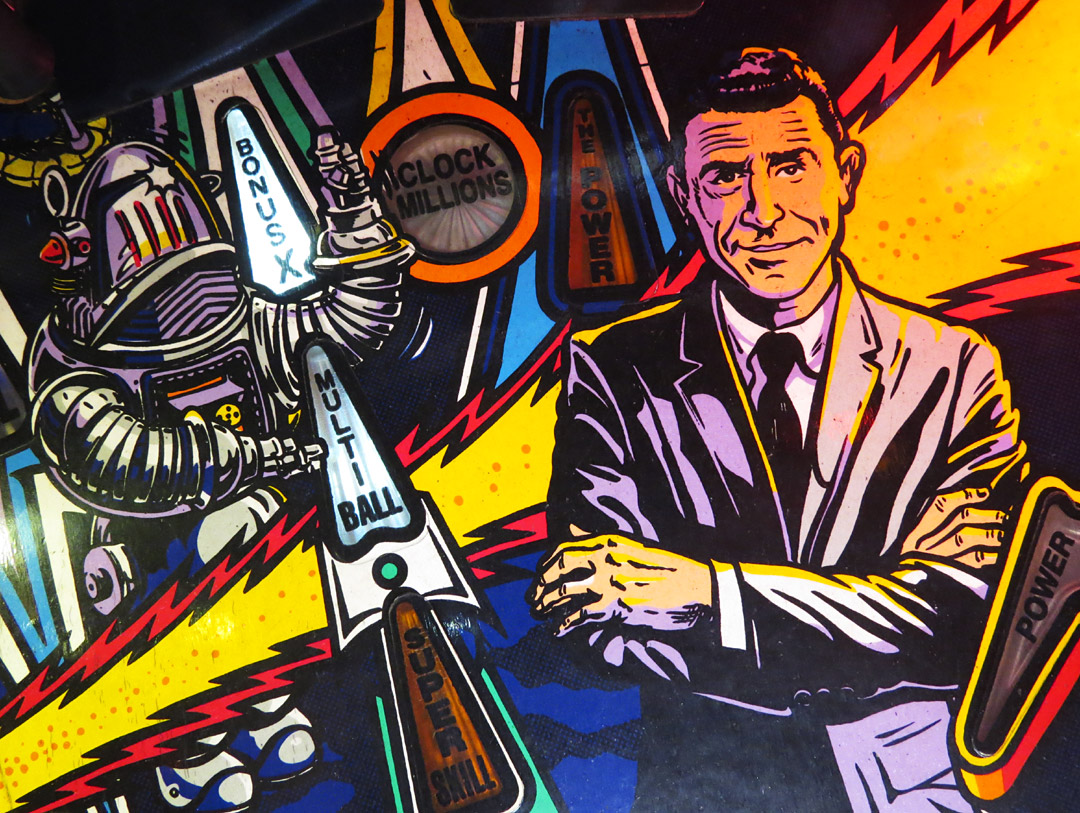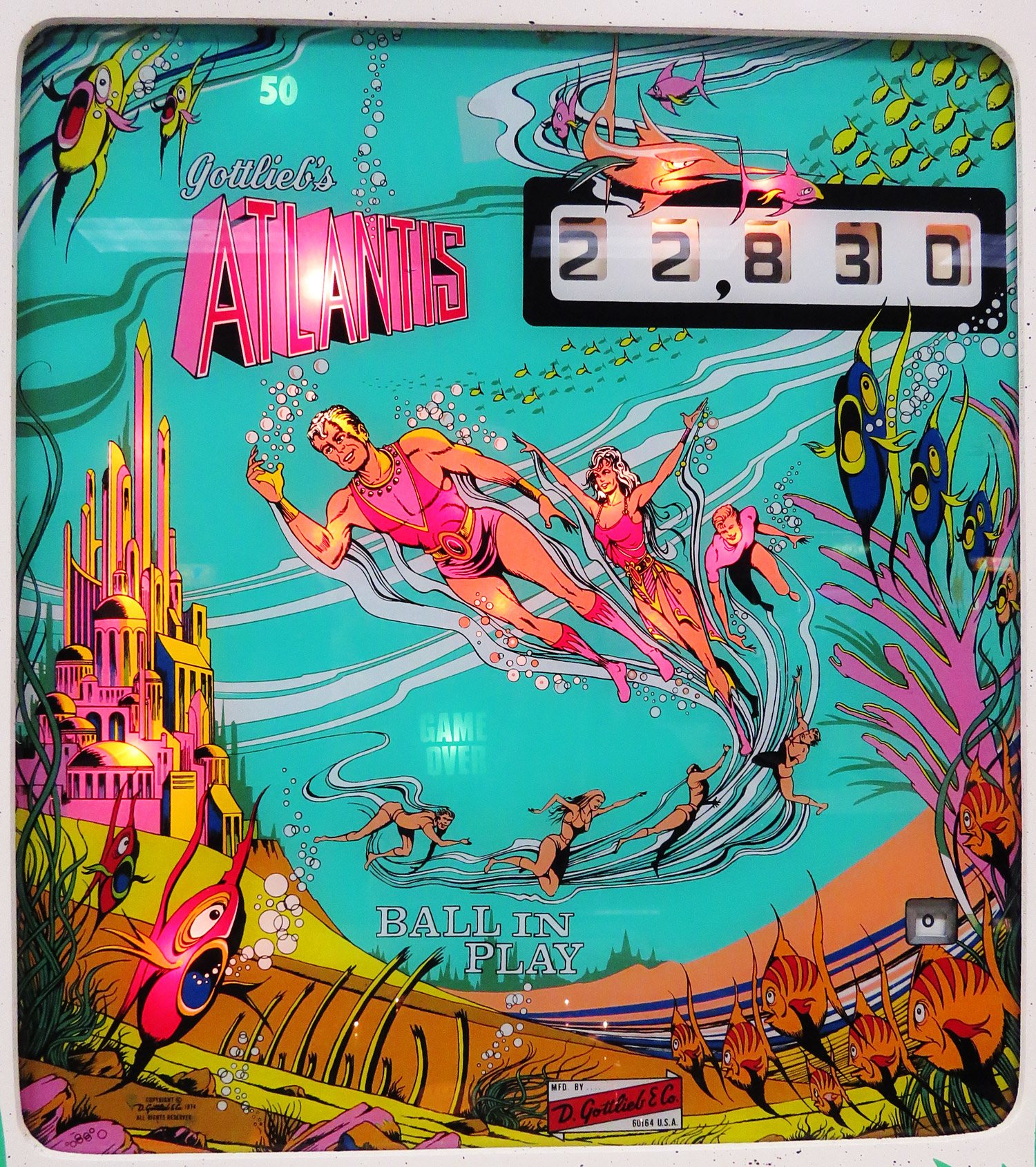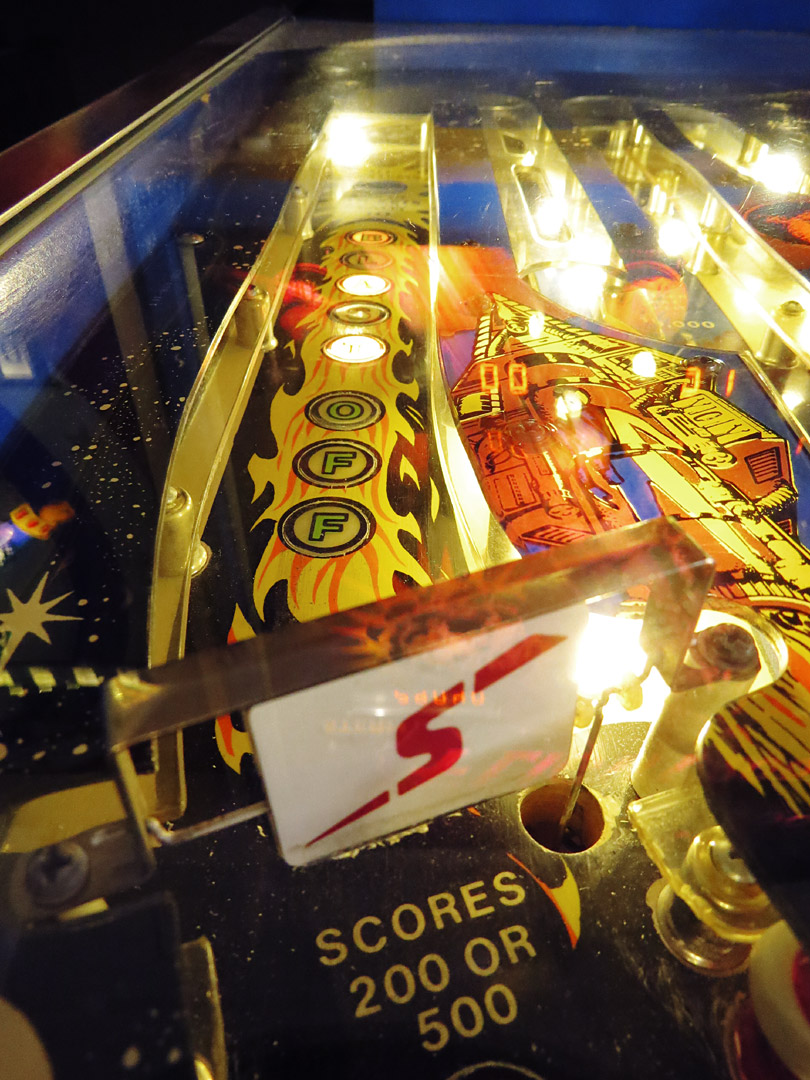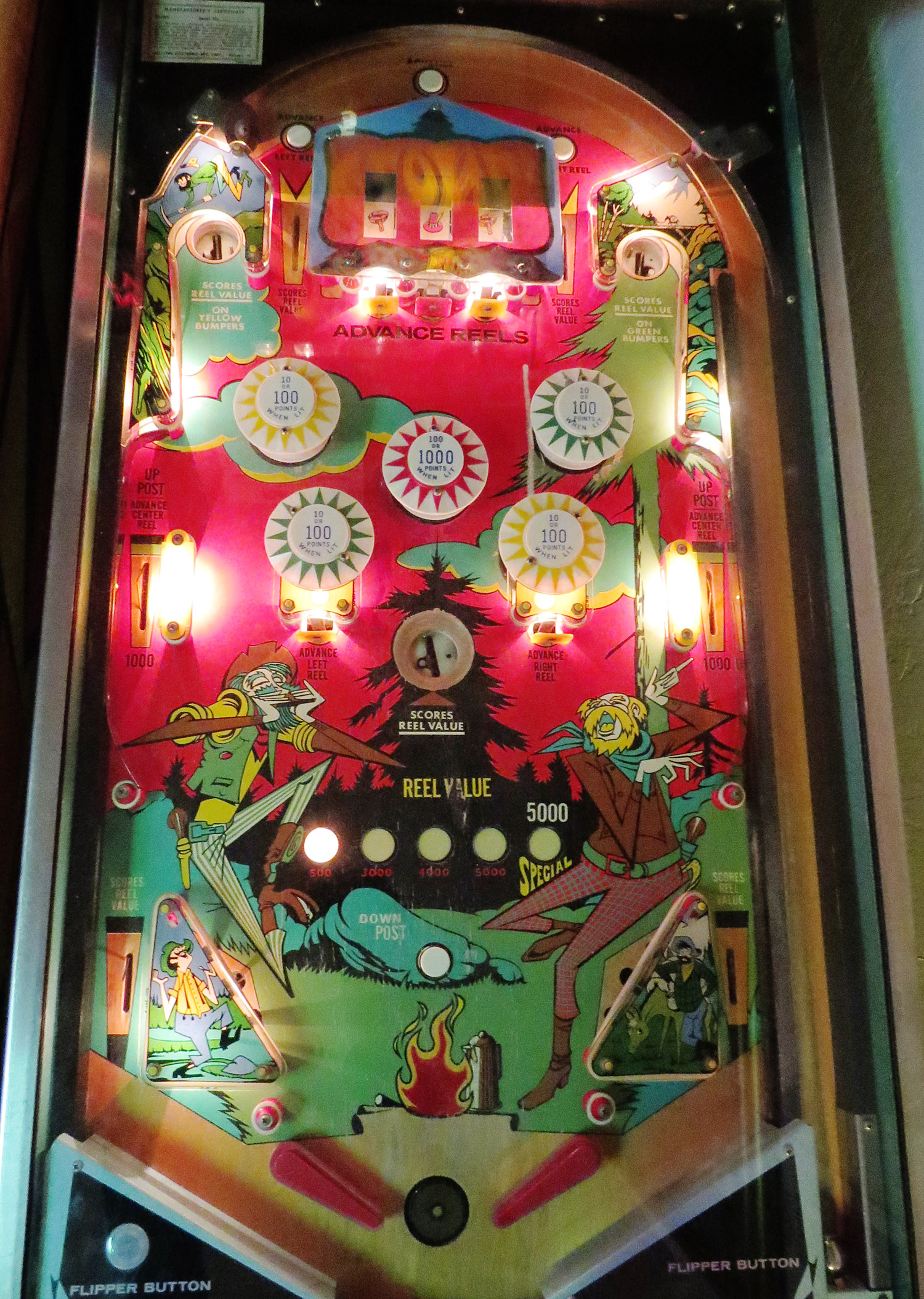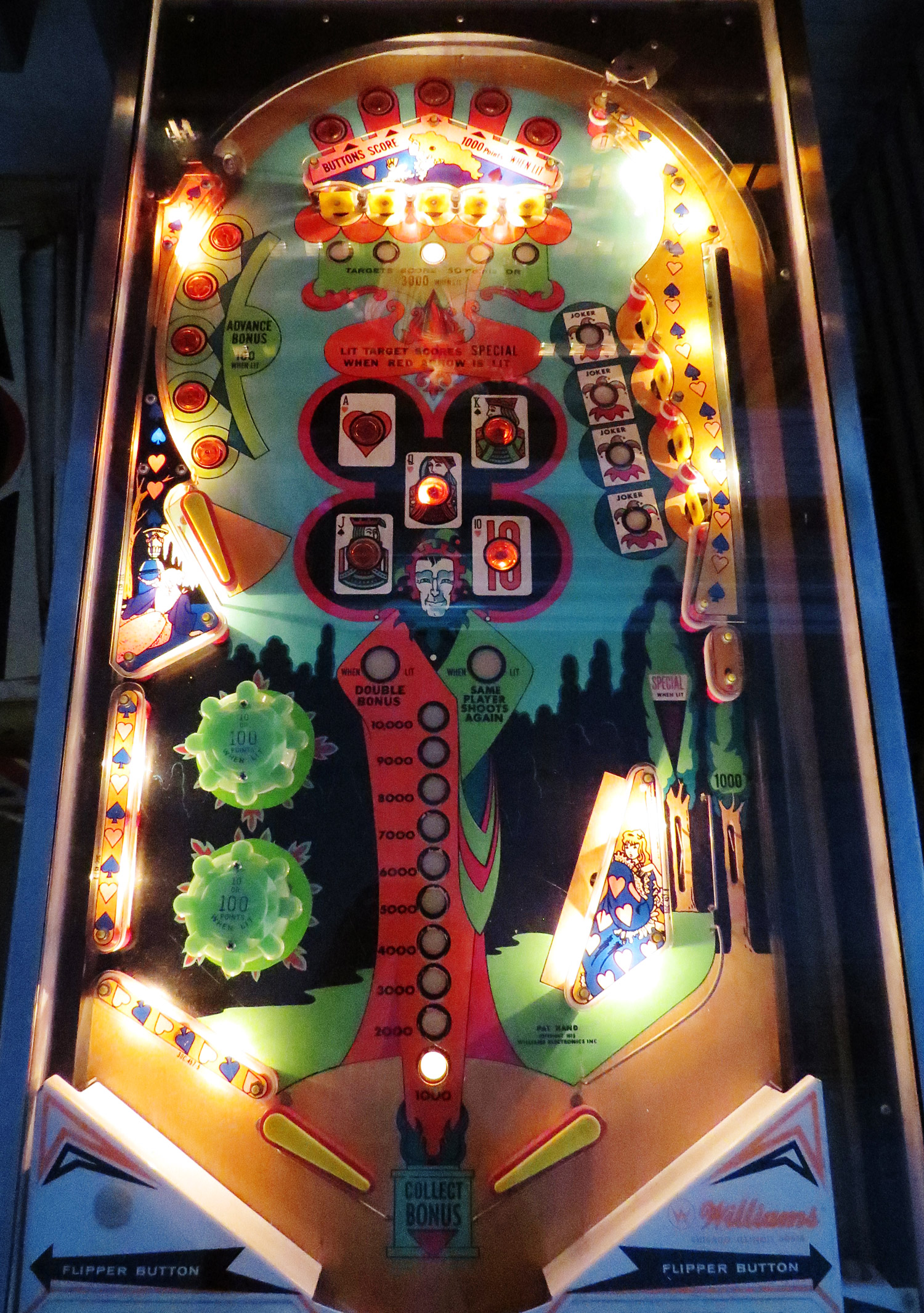 The makers' names were spoken in hushed and reverent tones: Bally ... Williams ... Gottlieb. Each playfield was a perfect self-contained world of action beneath plate glass. The backglass paintings, with their garish colors and comic-strip technique, promised excitement far beyond mundane everyday life; each pull of the plunger launched us into distant locales filled with exotic people. Life was a poker game, a hot-rod race, a downhill slalom! The names alone told a story of adventure: Buckaroo ... Time Tunnel ... Fireball! With each "kaching," the digits added to our worth -- hundreds, thousands, millions! Millions of what? Who cared? For a winner, the possibilities (it was implied) were endless.