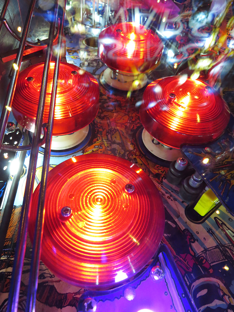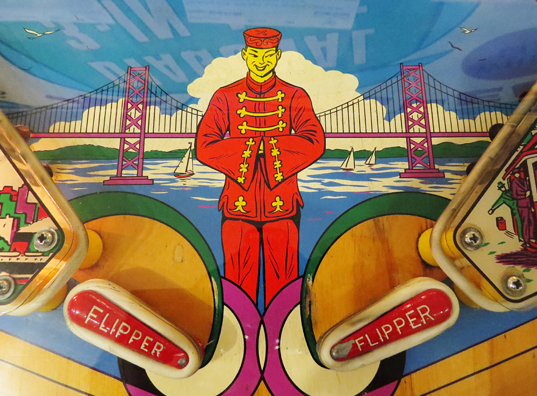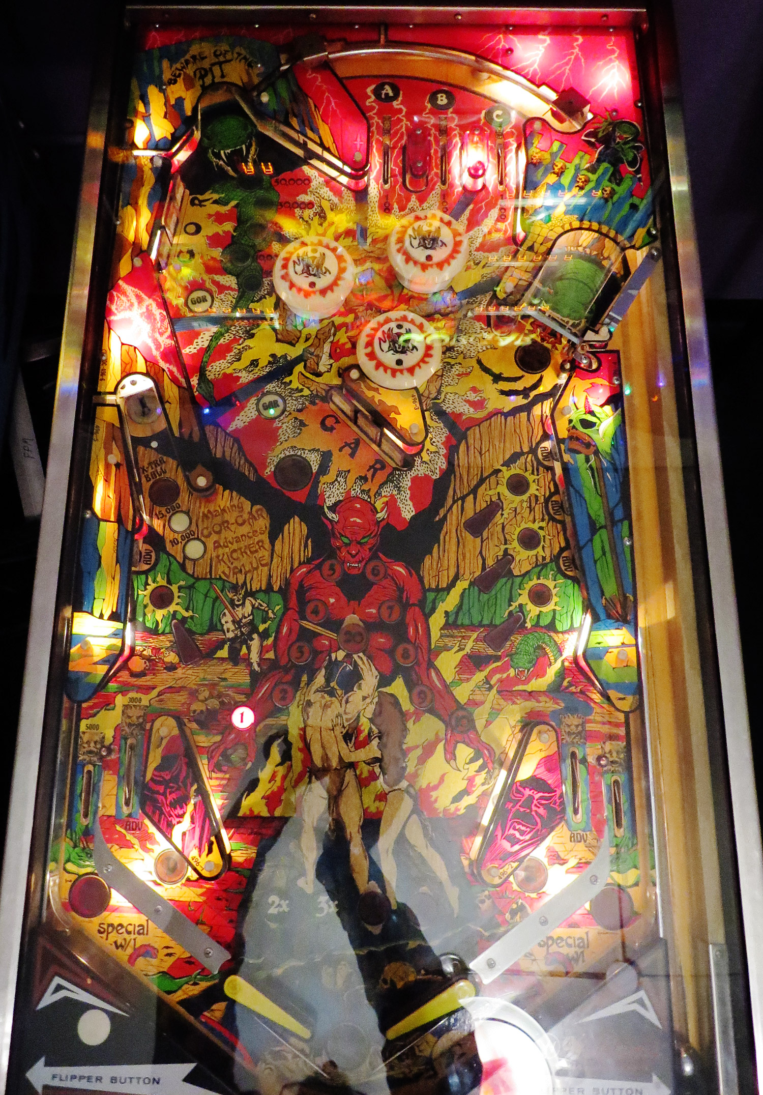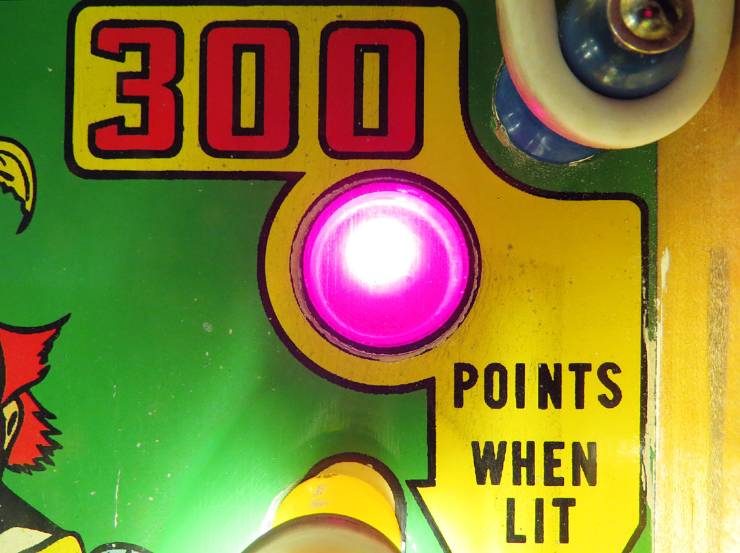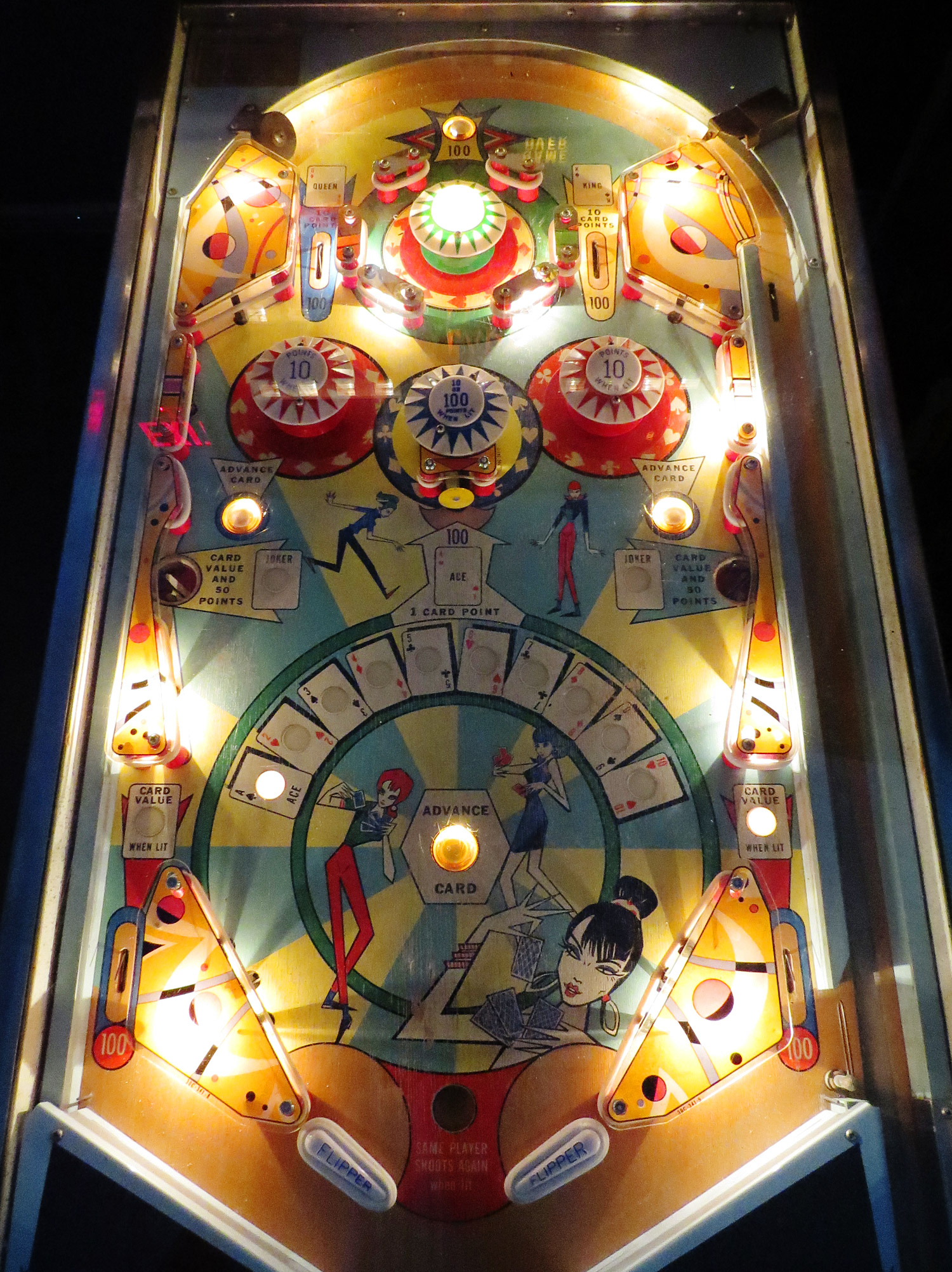 The makers' names were spoken in hushed and reverent tones: Bally ... Williams ... Gottlieb. Each playfield was a perfect self-contained world of action beneath plate glass. The backglass paintings, with their garish colors and comic-strip technique, promised excitement far beyond mundane everyday life; each pull of the plunger launched us into distant locales filled with exotic people. Life was a poker game, a hot-rod race, a downhill slalom! The names alone told a story of adventure: Buckaroo ... Time Tunnel ... Fireball! With each "kaching," the digits added to our worth -- hundreds, thousands, millions! Millions of what? Who cared? For a winner, the possibilities (it was implied) were endless.