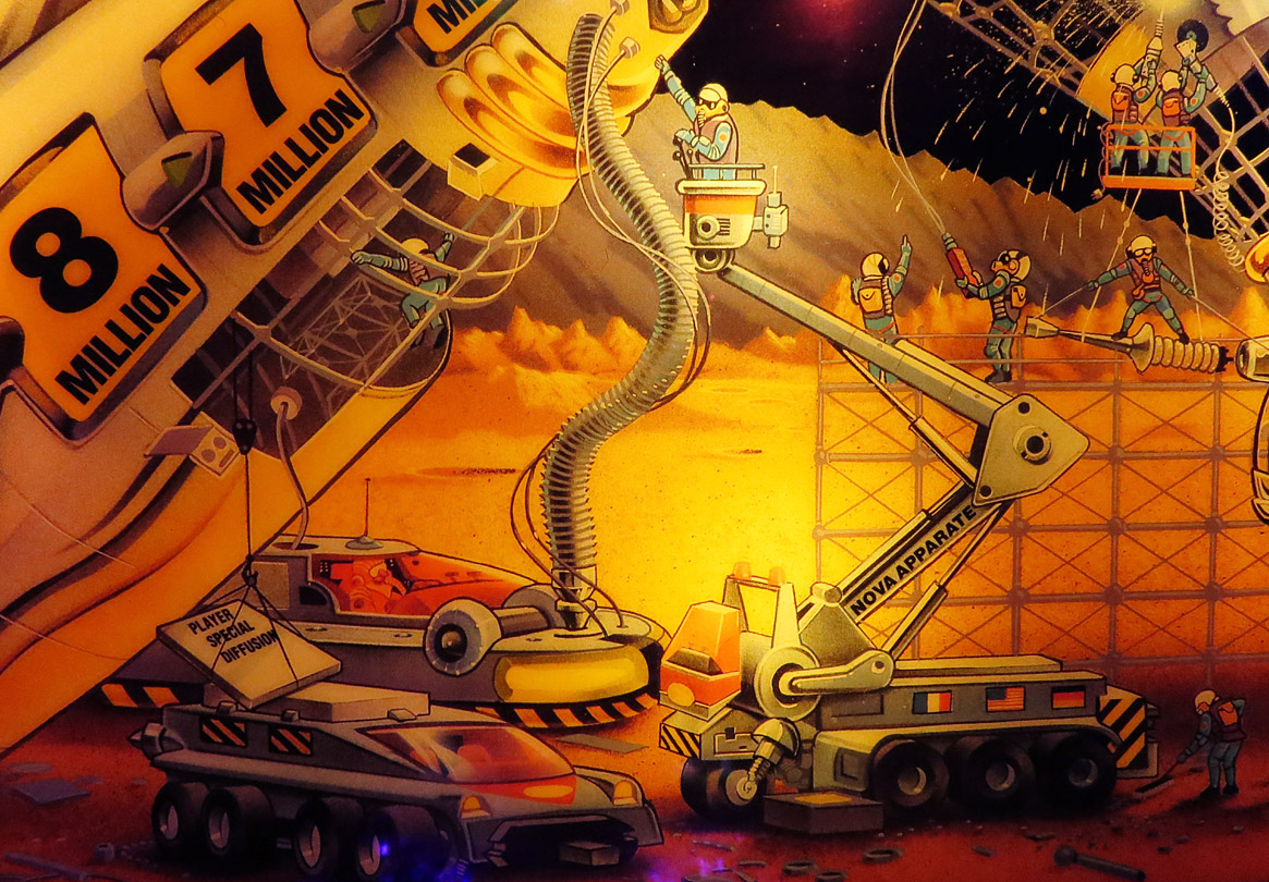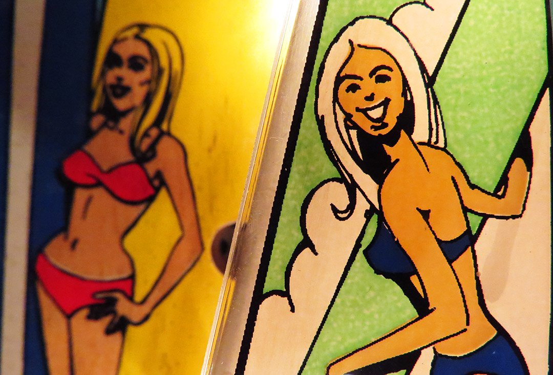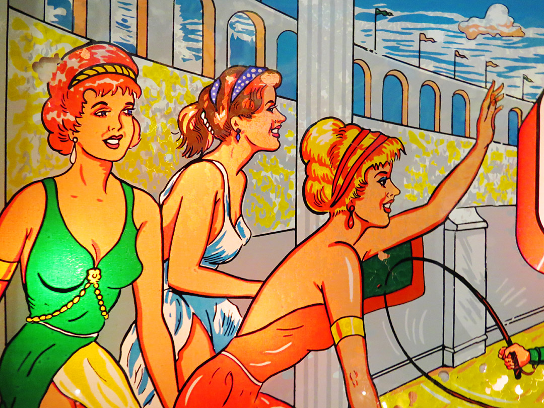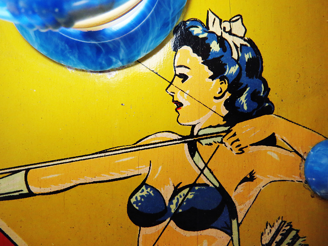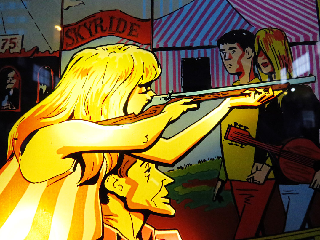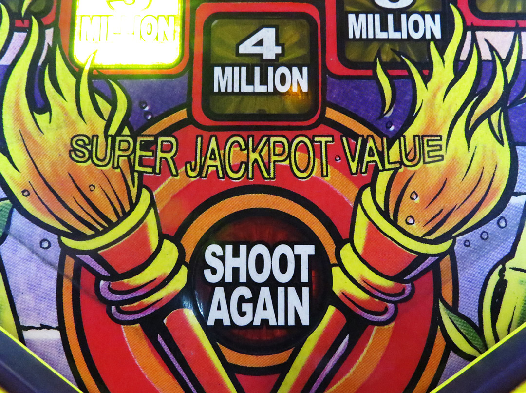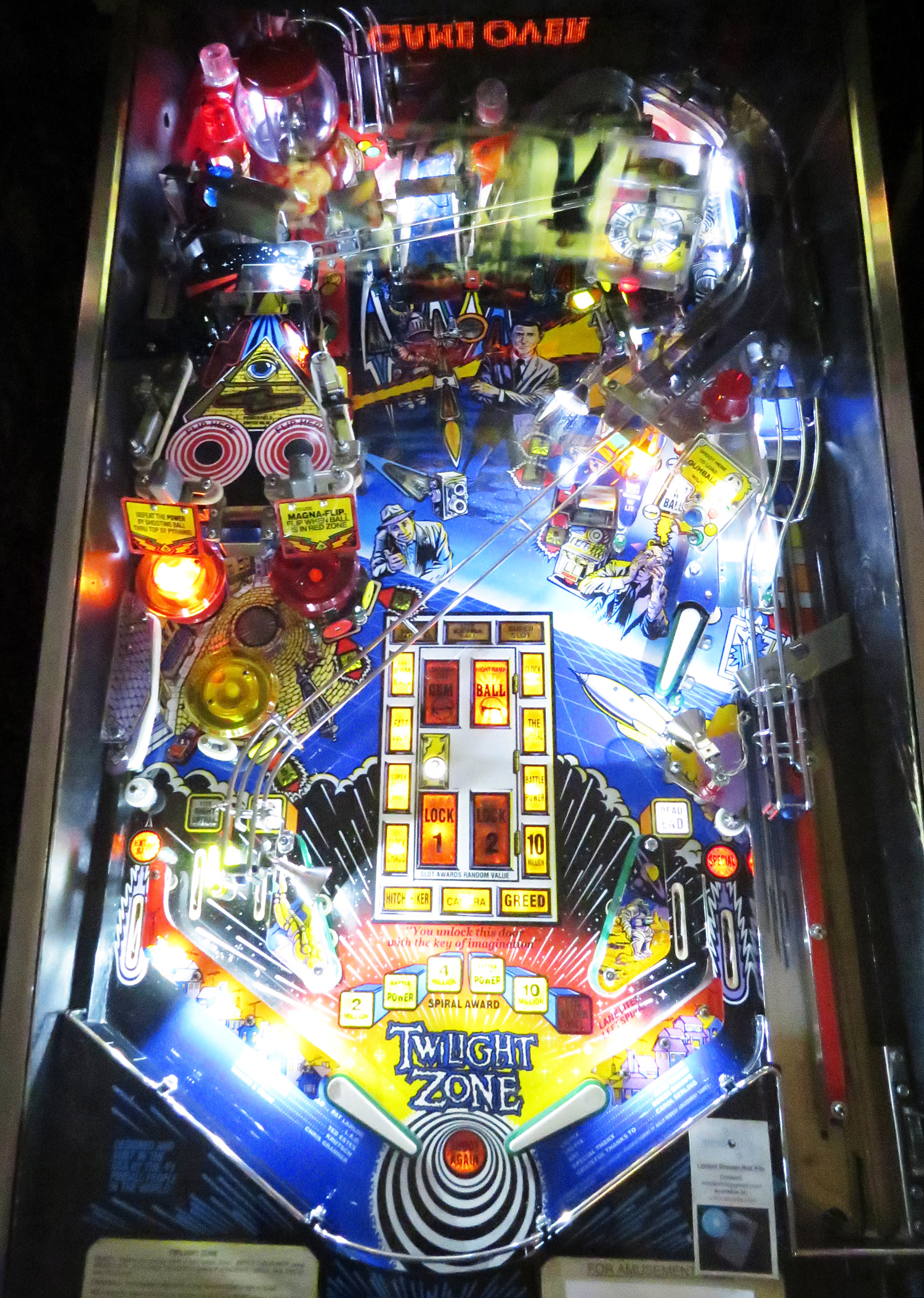 The makers' names were spoken in hushed and reverent tones: Bally ... Williams ... Gottlieb. Each playfield was a perfect self-contained world of action beneath plate glass. The backglass paintings, with their garish colors and comic-strip technique, promised excitement far beyond mundane everyday life; each pull of the plunger launched us into distant locales filled with exotic people. Life was a poker game, a hot-rod race, a downhill slalom! The names alone told a story of adventure: Buckaroo ... Time Tunnel ... Fireball! With each "kaching," the digits added to our worth -- hundreds, thousands, millions! Millions of what? Who cared? For a winner, the possibilities (it was implied) were endless.