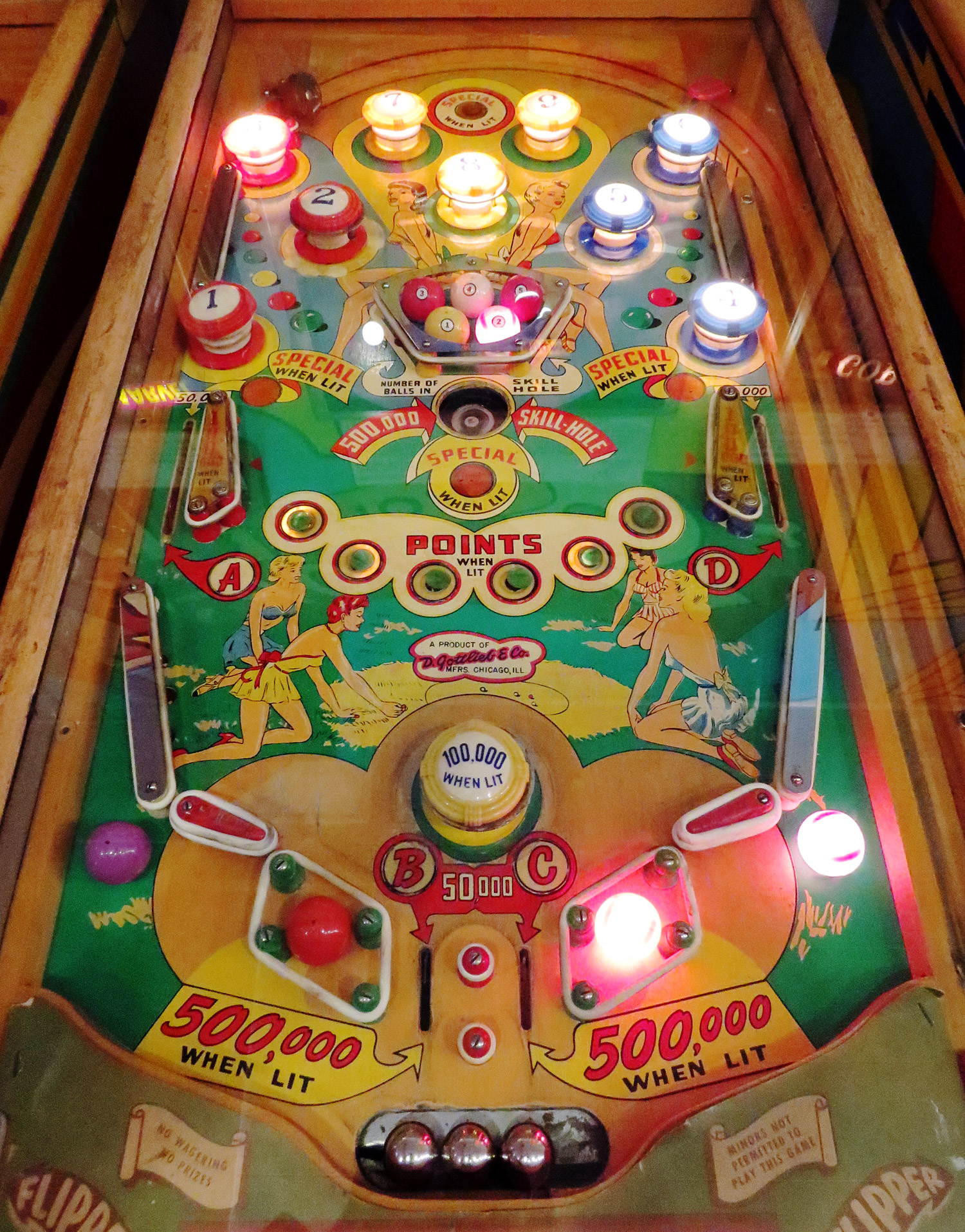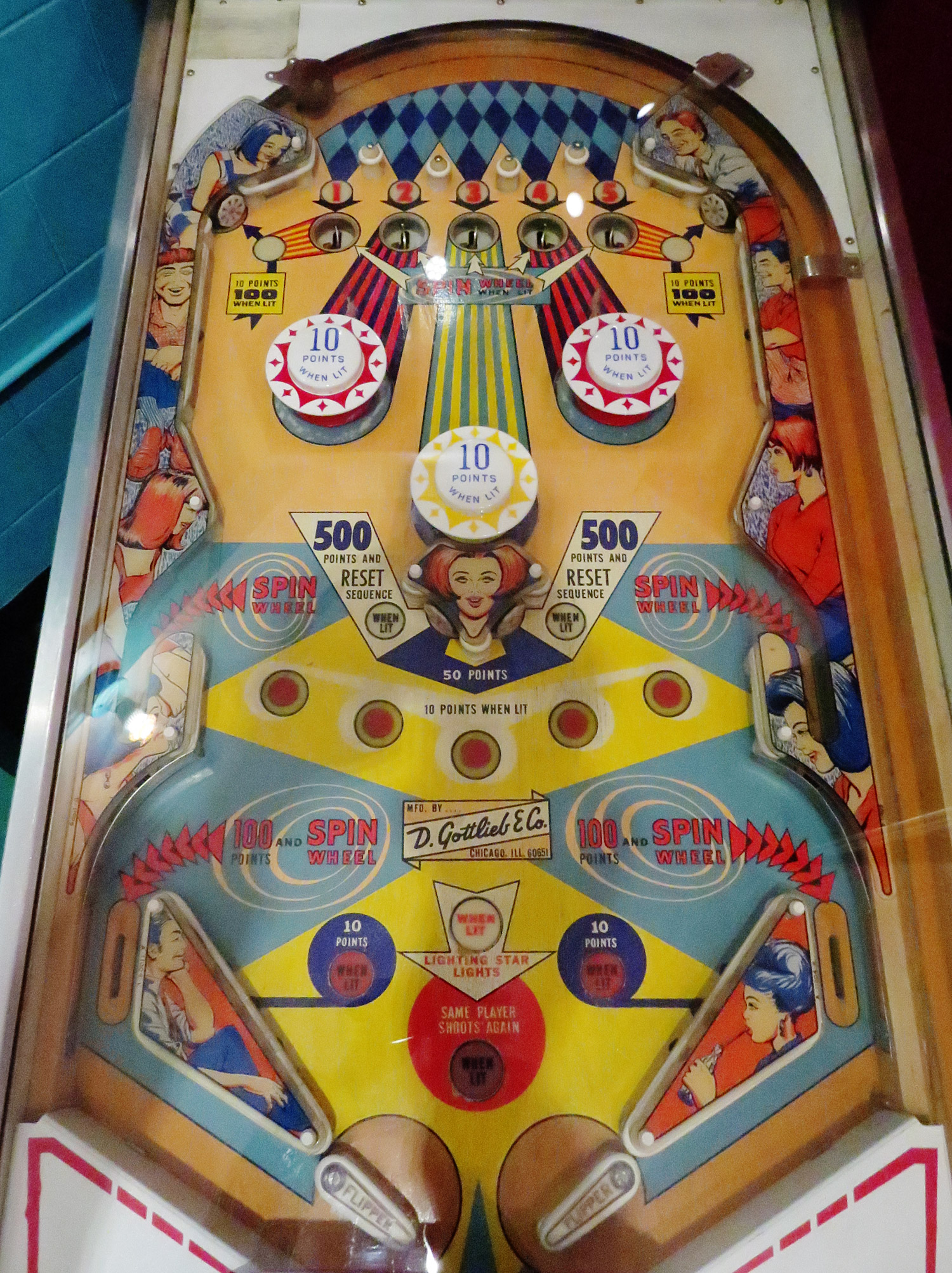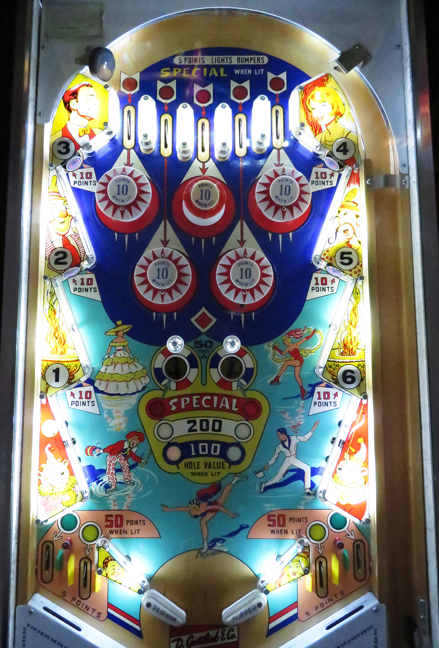 | (Gottlieb, 1947) "The first pinball ever to feature 'flippers'." | (Gottlieb, 1952) |