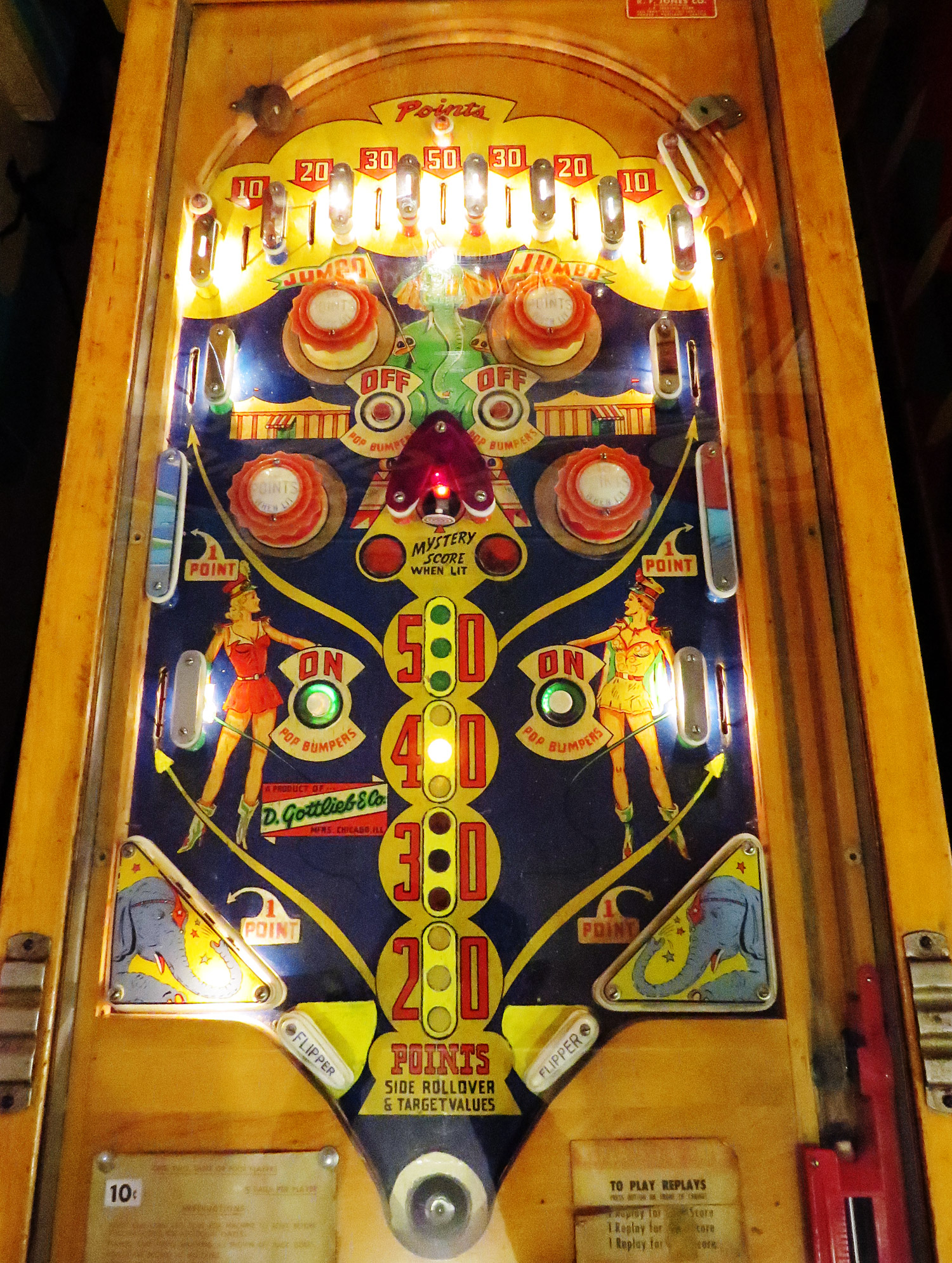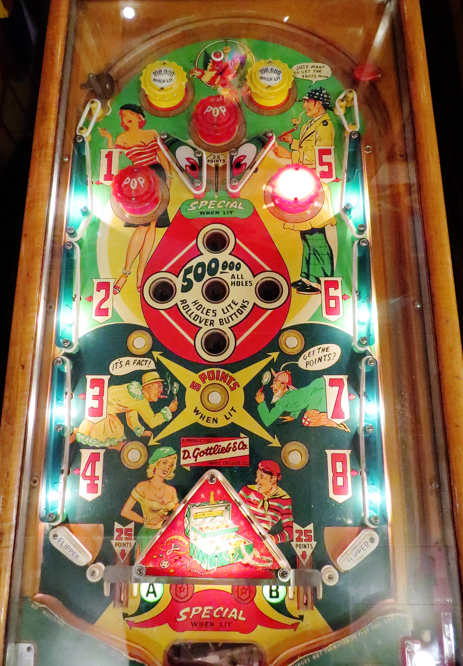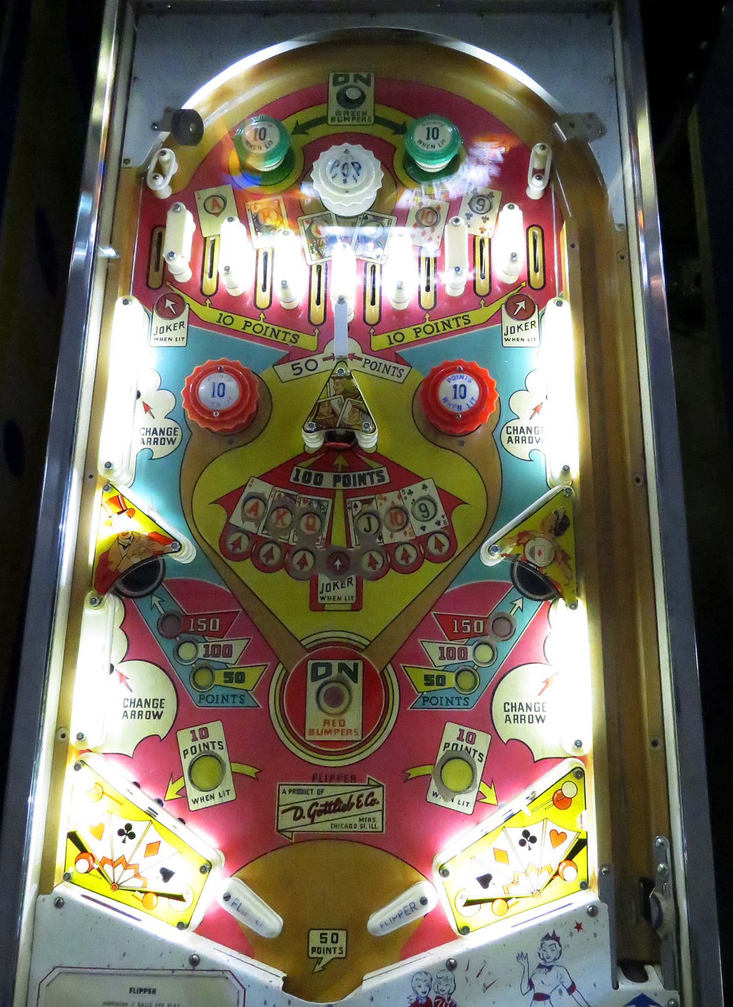 | (Gottlieb, 1947) "The first pinball ever to feature 'flippers'." | (Gottlieb, 1952) |