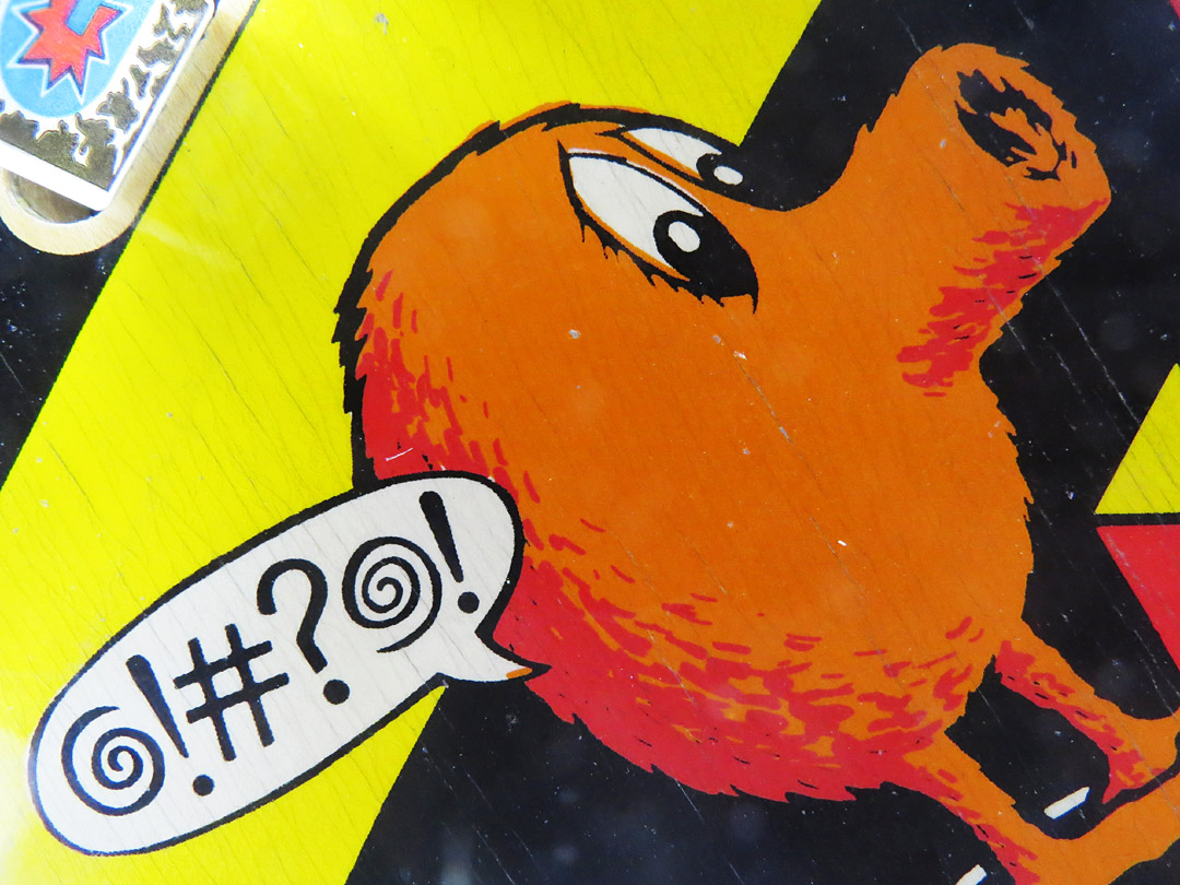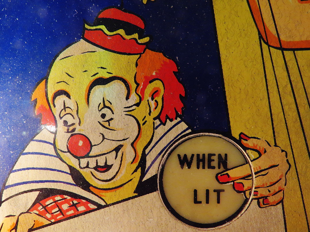 | (Bally, 1979) "This Bally Hoo Pinball Machine had its name and back glass changed by Playland-Not-At-The-Beach due to its poor condition." |