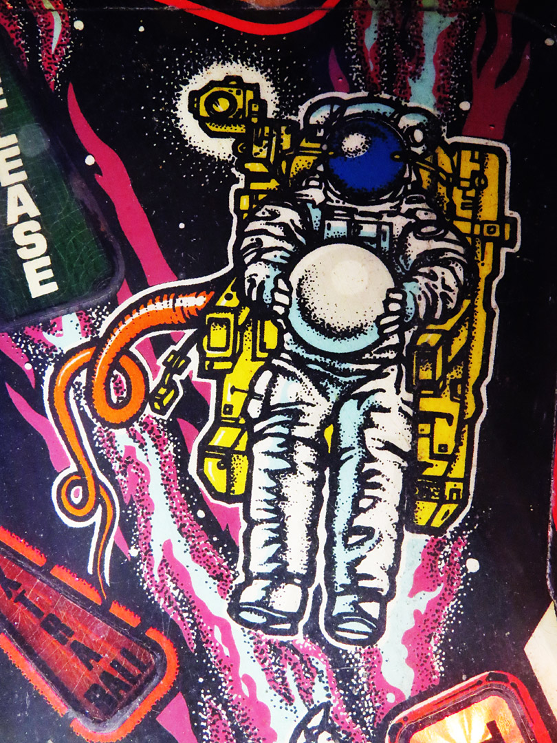As if there was any doubt that we were on a mission of challenge and self-improvement, each machine carried the caveat A GAME OF SKILL. This was not a mere game, this was an application of physics and a near-mystical coordination of hand and eye! Every angle of rebound was instantly calculated -- the future must be anticipated if disaster was to be avoided and targets hit. A nudge of just the right amount at just the right time was critical, but too much would bring the suddenly silent death of the TILT. The flippers were an extension of our muscles, of our very will -- man and machine had become one! A millisecond's hesitation could make the difference between continuing play -- life rescued from the inevitable jaws of gravity -- and going "down the drain" (followed by the dreaded words GAME OVER). All achieved at breakneck speed and within a cacophony of light and sound.