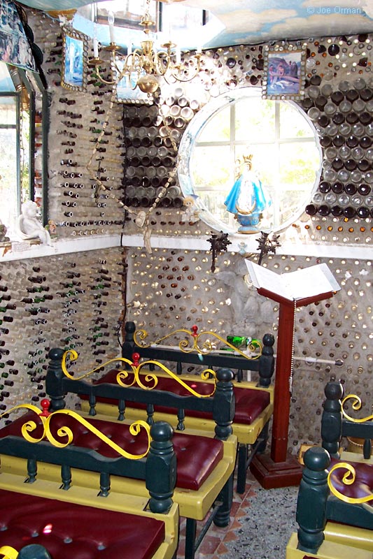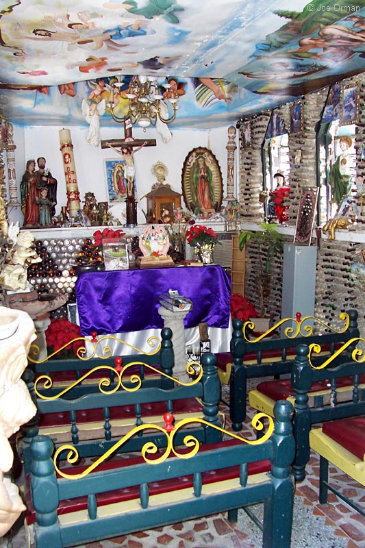 Besides the fact that it's built out of bottles, this is also one of the most extensively decorated chapels I've seen. The interior is aglow with color, and the bottles themselves act as stained glass windown. But the wonders continue outside the chapel; every corner of Tio's Tacos' extensive patio area is crammed with oddities, so you can dine with someone creepy looking over your shoulder. It's all the work of folk artist Martin Sanchez, and it's all indescribably strange.