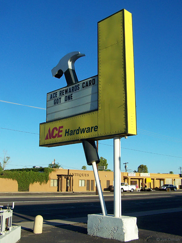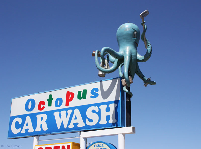 Programmatic signs are a branch of programmatic (mimic) architecture featuring advertising signs as a 3-dimensional representation of the product being sold, or just in a novelty shape meant to catch the eye. This was one way that businesses attracted travelers during the golden age of the automobile, and it is another example of roadside Americana that is slowly disappearing.