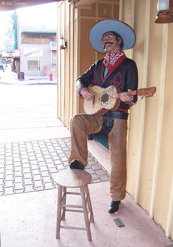 Walk the streets of this Old West town and you may bump into some real characters. A half-dozen lifesize -- and lifelike -- bronze sculptures by J. Seward Johnson represent historical personages from Wickenburg's past. You may also be startled to find yourself sharing the sidewalk with some non-human desert critters -- but those are Johnson sculptures too. Shown above is Miner Leading his Donkey; below are photos of the other sculptures (click to enlage).