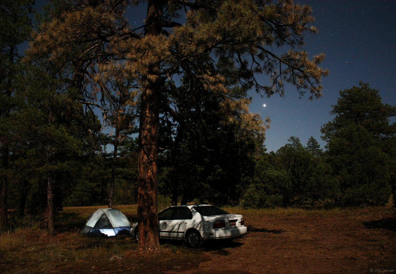 Both photos taken with Canon EOS Rebel XSi digital SLR, 18-55 mm zoom lens at 18mm, f/3.5, ISO 1600, 13 second exposure. The foreground was illuminated by a 2-days-past-full moon